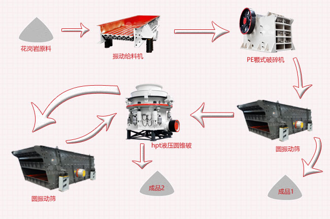 花崗巖硬度高,破碎工藝需采用多級破碎設備,確保成品粒度均勻,設備配置需依據(jù) “粗碎 - 中碎 - 細碎” 的標準流程。