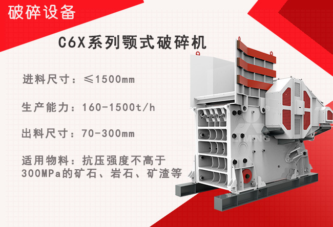 顎式破碎機是一種常用的破碎設備,適用于中高硬度物料的破碎,具有破碎比大、破碎效率高、結(jié)構(gòu)簡單、維修方便等優(yōu)點。它適用于各種礦石、巖石、水泥、煤等的破碎。但顎式破碎機的出料粒形較差,片狀含量高,因此通常需要搭配二破設備進行整形。滿足時產(chǎn)500噸的顎式破碎機型號有C6X125、C6X145、C6X160、C6X200.PE1000×1200、PE1200×1500、PE1500×1800等。